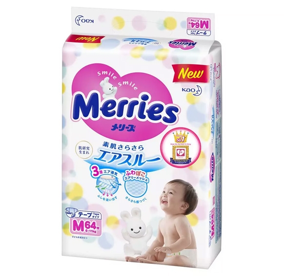 Bỉm dán cộng miếng Merries size M 64+4 (6-11kg)