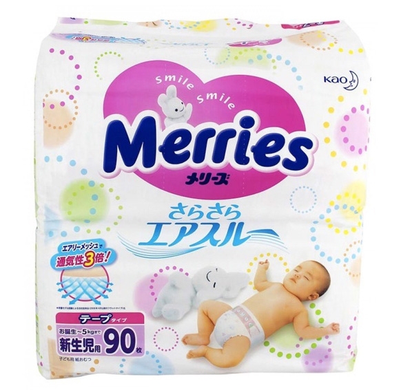 Bỉm dán cộng miếng Merries size Newborn 90+6 (dưới 5kg)