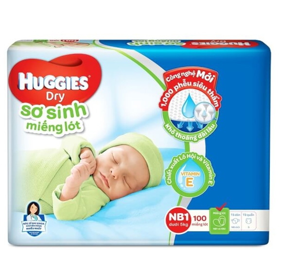 Miếng lót Huggies size Newborn 1 - 100 miếng (dưới 5kg)