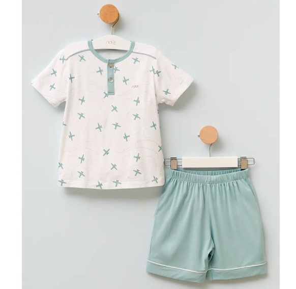 Nous Kids bé trai xanh lơ hoạ tiết máy bay