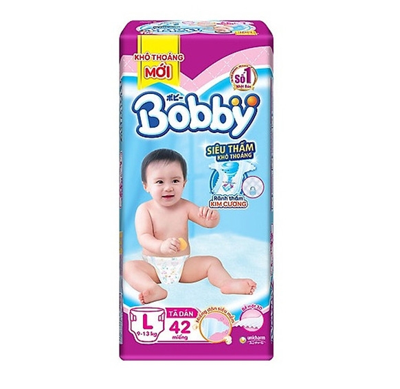 Tã dán Bobby siêu thấm khô thoáng size L - 40 miếng (9-13kg)