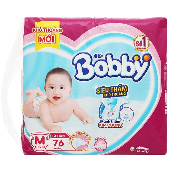 Tã dán Bobby Siêu Thấm Khô Khoáng size M - 76 miếng (6-10kg)