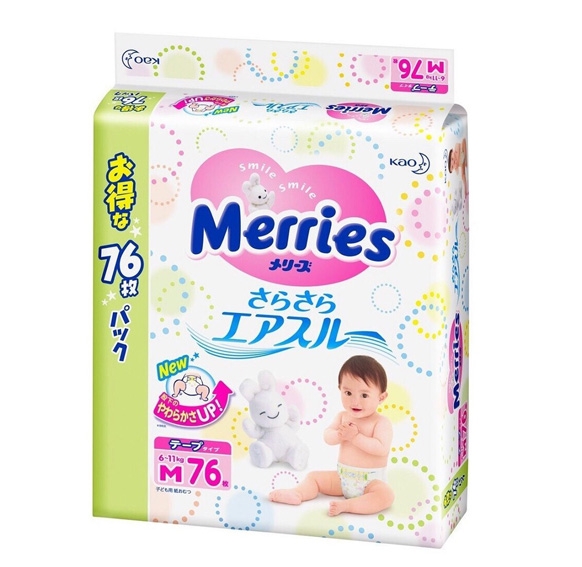 Tã Dán Merries Jumbo size M - 76 miếng (6-11kg)