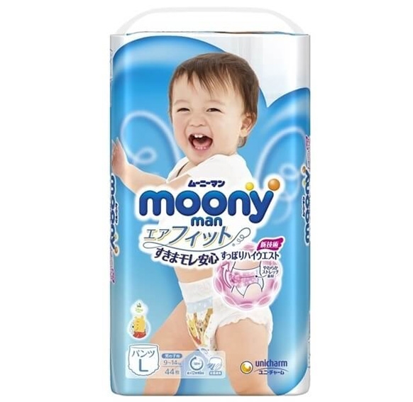 Tã quần Moony xanh tiêu chuẩn size L bé trai - 44 miếng (9-14kg)